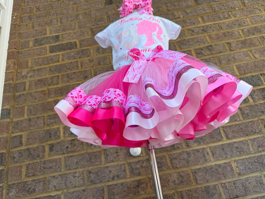 Barbie Tutu Outfit Set (3 layer Ribbon Trimmed tutu outfit)
