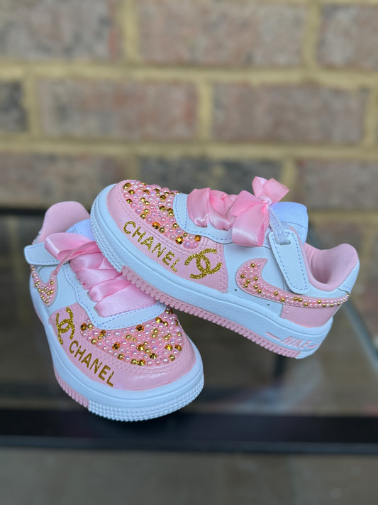 Designer Inspired Air Force 1’s Sneakers Girls Sneakers, Pink and Gold Air Force 1’s