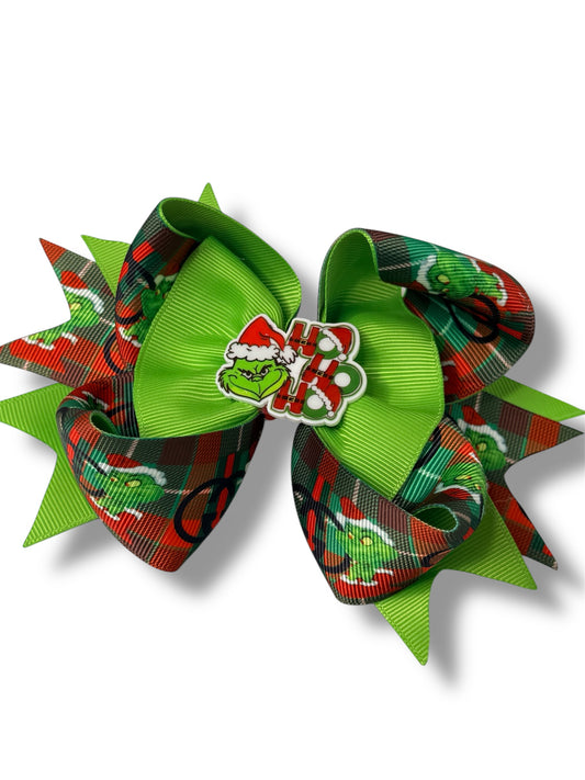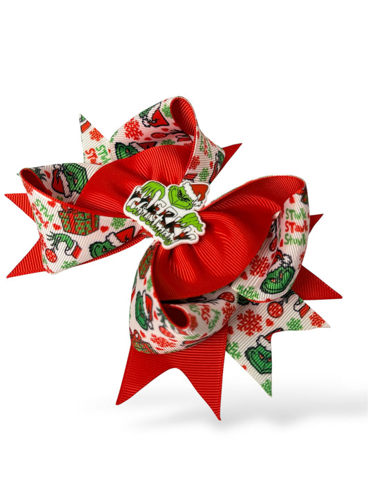 Grinch Hair Clip, Red and Green Grinch Hair clip, Green & Red Christmas Bow Hair Clip for Girls