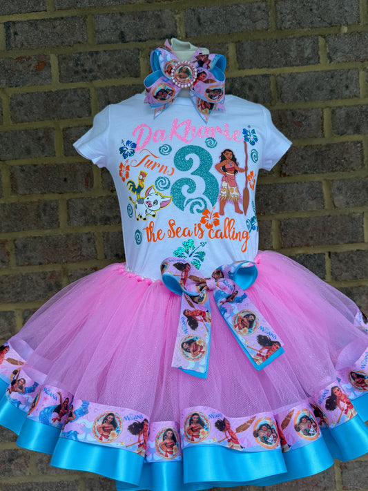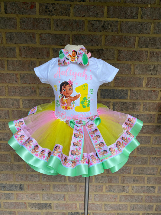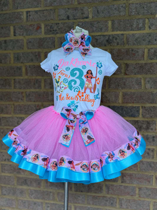 Moana Tutu Outfit, Moana Birthday tutu outfit, 3 layer Moana Ribbon Trimmed tutu outfit