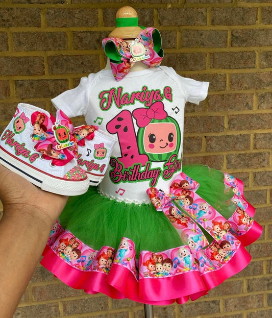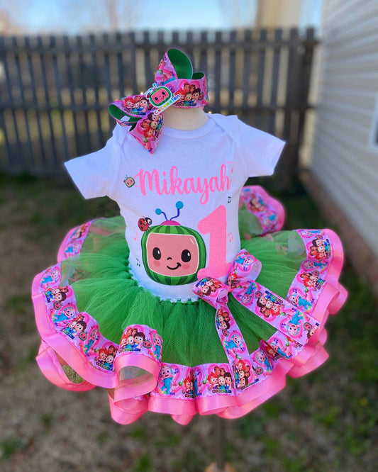 Cocomelon Tutu Outfit Set (3 layer Ribbon Trimmed tutu outfit) Cocomelon #18