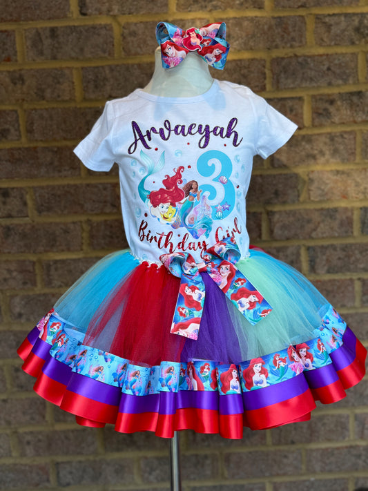 Moana Tutu Outfit, Moana Birthday tutu outfit, 2 Layer Ribbon trimmed tutu outfit