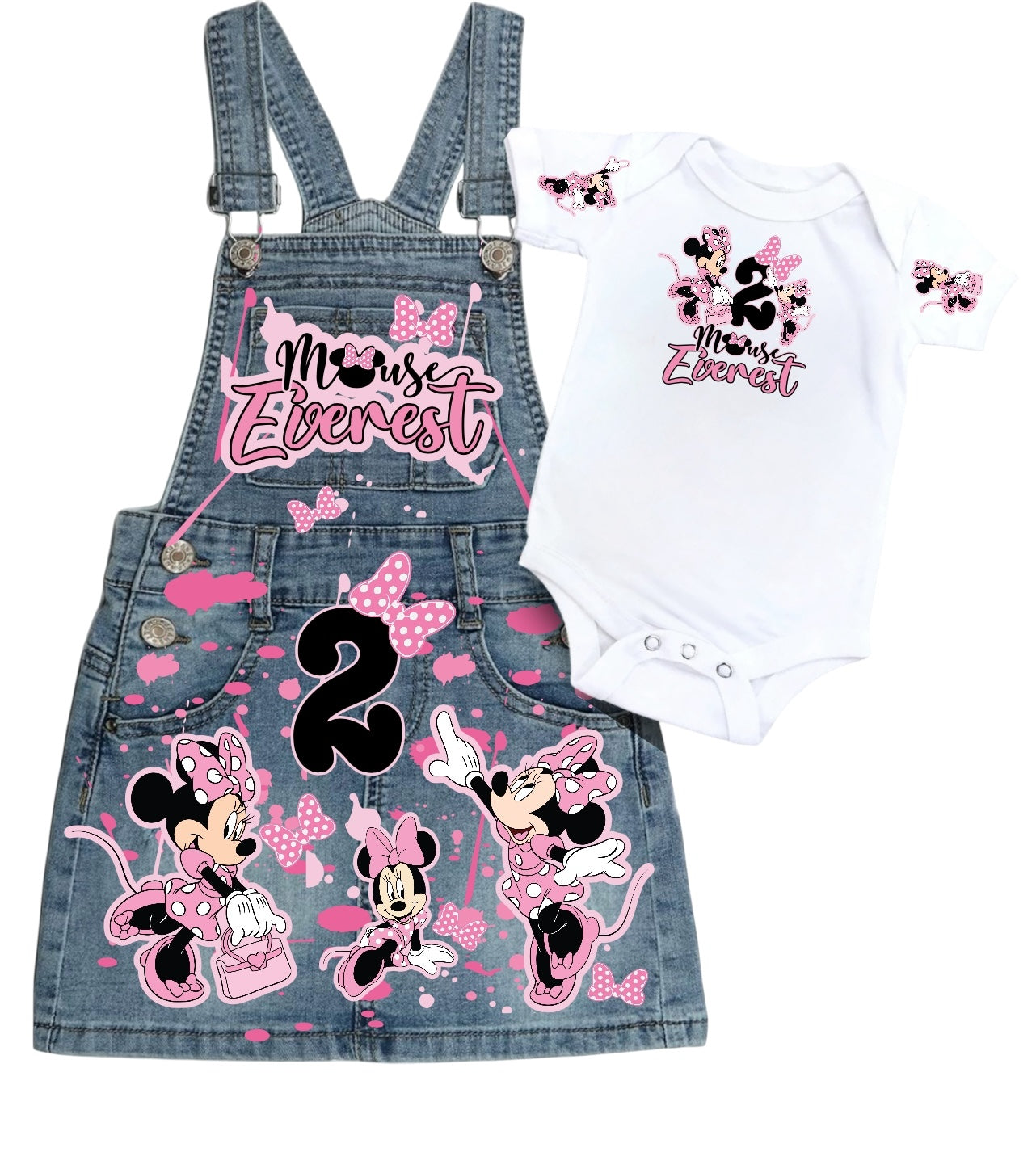 Minnie Mouse Denim overall outfit, jeans overall dress, Minnie mouse birthday jeans dress